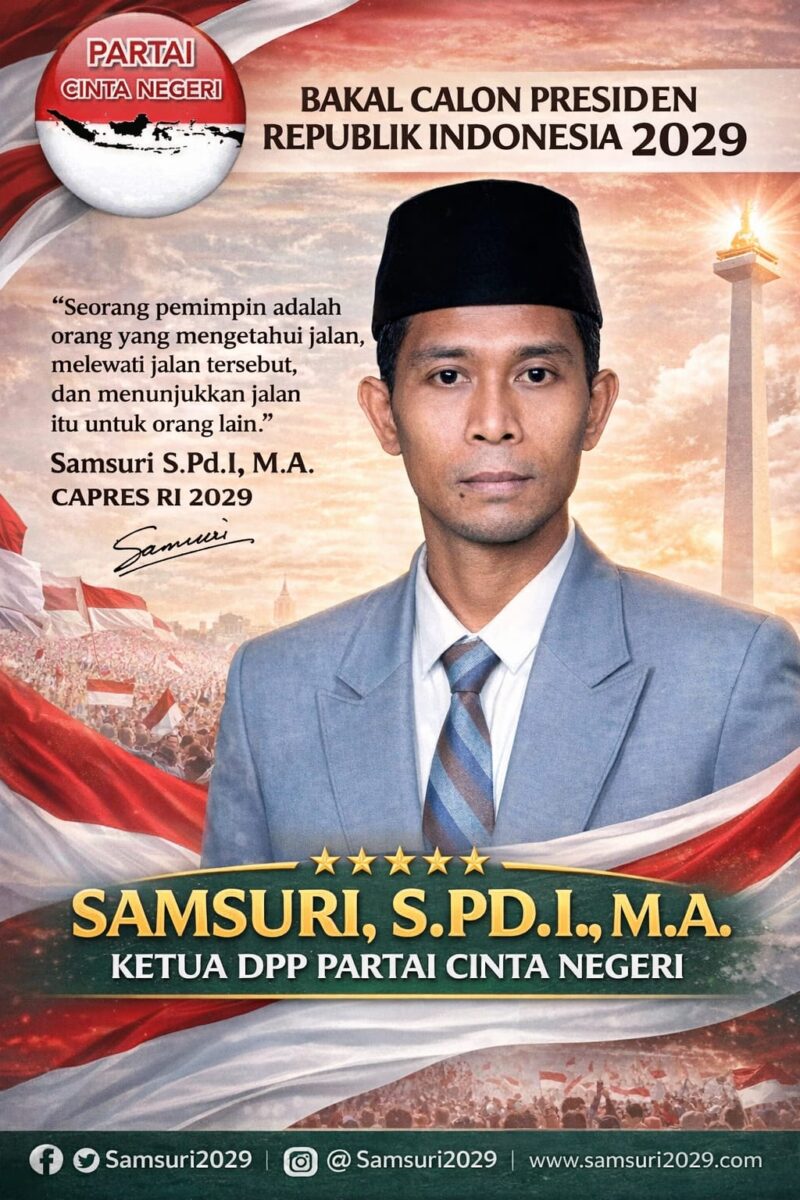 DEKLARASI SAMSURI, S.Pd.I, M.A (KETUA UMUM PARTAI CINTA NEGERI) SEBAGAI CALON PRESIDEN REPUBLIK INDONESIA PERIODE 2029–2034.