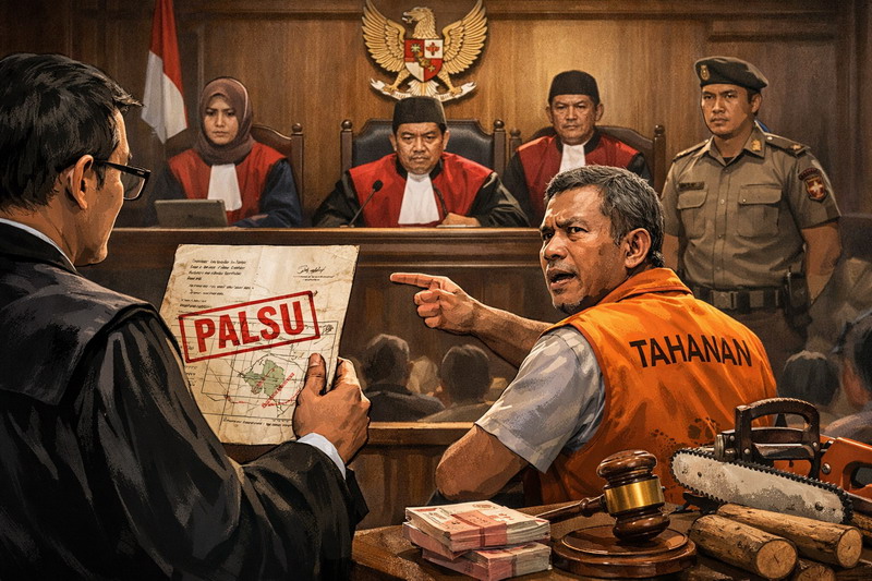 Sidang kemarin berlangsung panas dan penuh tekanan. Rabusin, yang duduk di kursi terdakwa, secara terbuka menantang jaksa dan majelis hakim untuk menghadirkan bukti otentik kepemilikan lahan dari pihak pelapor. Namun, yang terjadi justru sebaliknya. Bukti yang dihadirkan di ruang sidang hanyalah selembar surat yang diduga kuat palsu, lengkap dengan tanda tangan kepala desa yang keasliannya dipertanyakan. Rabusin dengan suara lantang menegaskan di hadapan majelis hakim bahwa nenek kandungnya yang tercantum dalam surat itu telah lama meninggal dunia, sehingga mustahil menandatangani dokumen tersebut. Pernyataan ini tidak dibantah, namun juga tidak digubris secara serius oleh aparat penegak hukum yang hadir di ruang sidang.