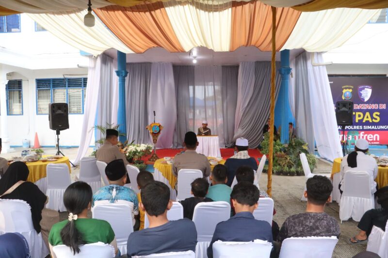 SIMALUNGUN – Tidak ada protokoler yang kaku. Tidak ada jarak yang terasa jauh. Yang ada hanyalah kehangatan yang mengalir deras sore itu di halaman Satpas Sat Lantas Polres Simalungun, Jalan Asahan Batu 7, Nagori Lestari Indah, Kecamatan Siantar, Kabupaten Simalungun, Kamis, 5 Maret 2026. Tepat pukul 16.30 WIB, Kapolres Simalungun AKBP Marganda Aritonang, S.H., S.I.K., M.M., hadir bukan sebagai pejabat yang duduk di kursi kehormatan — melainkan sebagai sosok yang benar-benar menyapa, merangkul, dan berbagi hati dengan 50 anak yatim piatu yang datang dari berbagai penjuru wilayah Simalungun.