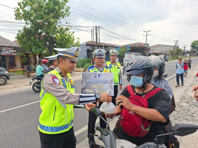 SIMALUNGUN – Air mata haru mengalir di wajah seorang ibu pengendara motor saat menerima takjil gratis dari tangan Kasat Lantas Polres Simalungun IPTU Devi Siringo Ringo, SH, S.Sos, MH. “Terima kasih Pak, saya sedang mencari takjil untuk anak saya di rumah tapi uang pas-pasan. Ini sangat membantu,” ucap ibu tersebut dengan terharu. Inilah pemandangan yang terjadi di depan Mako Sat Lantas Polres Simalungun pada Selasa sore, 3 Maret 2026, saat seluruh personel Sat Lantas turun langsung membagikan takjil dan bingkisan kepada pengguna jalan jelang berbuka puasa Ramadan 1447 H.